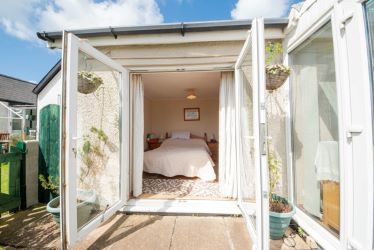 BBEDROOM ONE 9′ 11" x 9′ 0" (3.04m x 2.76m) Bedroom one houses a double bed and has French doors opening out into the luscious gardens. The perfect place to sip a coffee on a summers morning with a warm breeze and the birds singing all from the comfort of your bed.