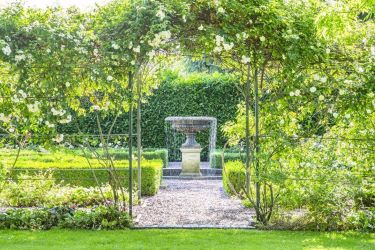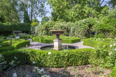 incorporate a rose arbour and two substantial ornamental fountains, maintained and superbly stocked ornamental flower beds, borders and