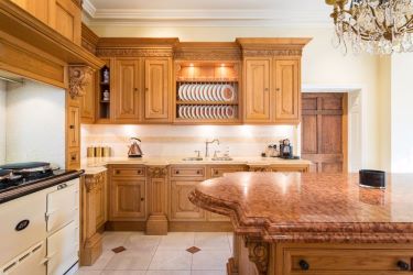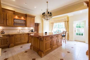 Sumptuously appointed with a superb range of base and wall mounted units comprising cupboards and drawers, attractive working surfaces, uPVC double glazed window to side elevation, single bowl deep enamel sink built-in double electric oven, four ring gas hob with filter canopy over, integrated fridge and freezer, integrated microwave and integrated dishwasher.