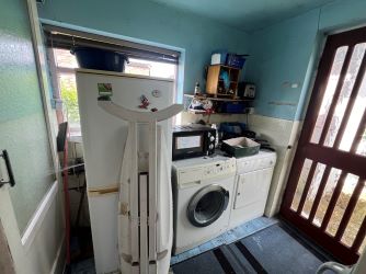 Plumbing for washing machine, space for tumble dryer, space for fridge freezer, Upvc double glazed window to side elevation, wooden door leading to rear garden