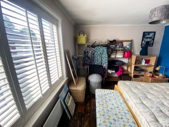 Bedroom Two 12' x 8'6" (3.66m x 2.6m). Window to rear. Central heating radiator. Large cupboard. Loft access.