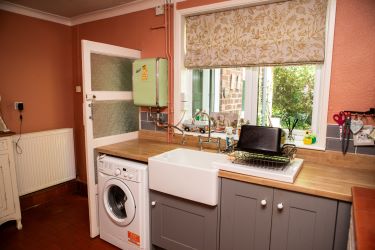 Kitchen 11'11" x 8'5" (3.63m x 2.57m). Windows to side and rear. Under stairs storage. Central heating radiator. Plumbing for washing machine.