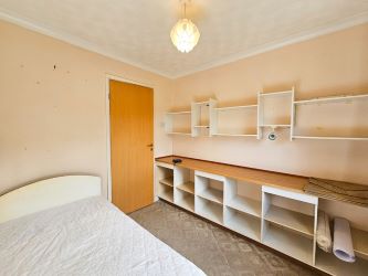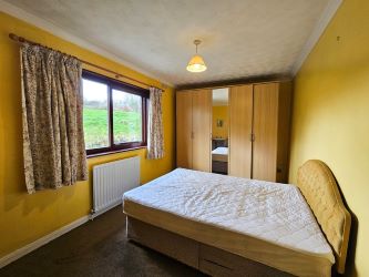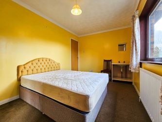 The third bedroom with carpeted flooring is equipped with a wall-mounted radiator and convenient power points, A double-glazed window to the front elevation. Additionally, it features a small hand wash basin with a mirror and light above.