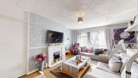 This property comes with tenant in situ, currently paying £475pcm, making it an ideal opportunity for CASH buyers seeking to secure a return on their investment. As non standard construction. Situated on the first floor, this two-bedroom flat offers comfort. Stepping inside, you'll immediately be greeted by the spacious lounge which provides ample room.