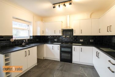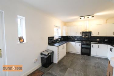 Two double glazed windows overlook the rear aspect coupled with a double glazed access door leading out to the rear garden. Fitted with a range of wall and base storage units, with inset asterite sink unit and side drainer. Coordinating work surface areas and partly tiled walls. Space for freestanding gas cooker with cooker hood, washing machine and fridge/freezer. Under stairs storage cupboard. Vertical height radiator. Space for table and chairs.