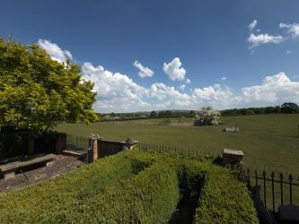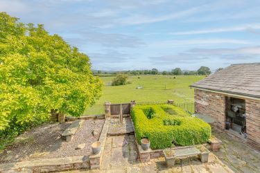 Gardens - The gardens surrounding the property consist of lawn areas and patio terraces with mature shrubs and hedging to the borders. The fabulous stone terrace provides a delightful place for entertaining both family and friends, with fabulous views across the surrounding countryside and towards Crocker Hill.