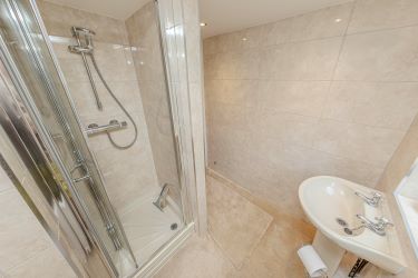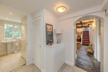 Downstairs Shower Room - Fitted with a shower, low level WC and pedestal wash hand basin. Tiled walls. Spotlights. Double glazed window. Radiator.