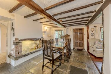 Dining Room - 4.27m x 3.48m (14'0 x 11'5) - Featuring stone flooring and exposed beams. Ample space for a large table and chairs. Double glazed window. Radiator. Stairs to first floor landing.