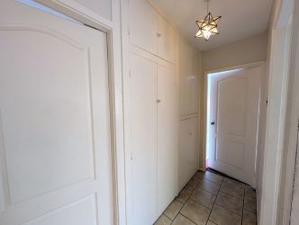 Tiled floor, radiator, built in storage cupboard housing hot water cylinder, thermostat and electrical consumer unit.