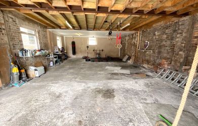Outside, the property sits on a generous plot with attractive gardens, ample driveway parking, and a remarkable detached garage/workshop – perfect for car enthusiasts, hobbyists, or those seeking additional storage or workspace potential.