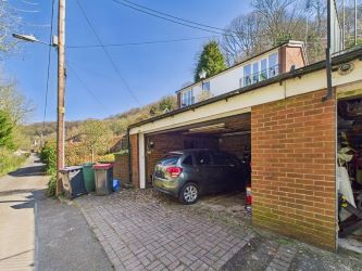To the front there is a double garage with roller shutter doors leading out to a block paved driveway and steps ascending to property where there is pedestrian access to the side and rear. There is a sloping rear garden with lower patio area and sloping lawn with steps leading to a raised decked area enjoying splendid views out toward Paradise and beyond.