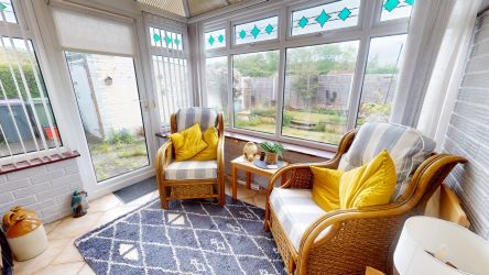 The ground floor boasts a sitting room that is ideal for relaxation and family gatherings, with double sliding doors into a separate dining room, offering further built-in storage and dedicated space for formal meals and entertaining. The property also features a conservatory, which allows natural light to flood in and provides access to the rear garden, making it a delightful area for enjoying peaceful moments or casual entertaining.