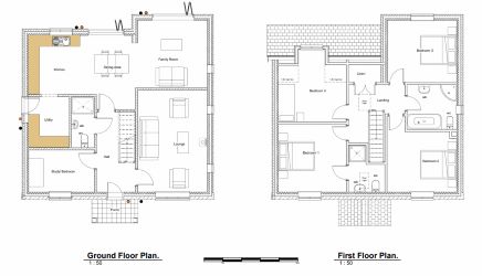 This unique design offers a flexible layout, with a spacious kitchen/dining/living area, a utility room, and a ground-floor bedroom complete with an en-suite shower room—ideal for guests or multi-generational living. The first floor features three additional bedrooms and a family bathroom. Like Plot 1, this property also enjoys enclosed gardens, ample parking, and a detached garage.