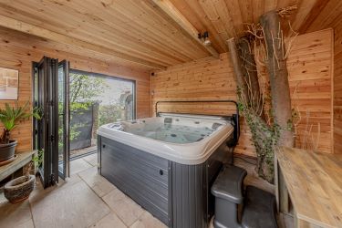 · Detached timber lodge with indoor hot tub, easily convertible into an office, gym, or studio
