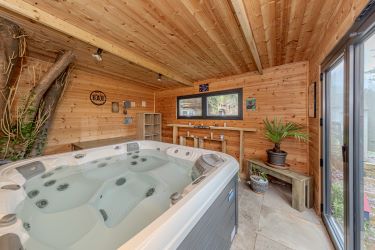 · Detached timber lodge with indoor hot tub, easily convertible into an office, gym, or studio