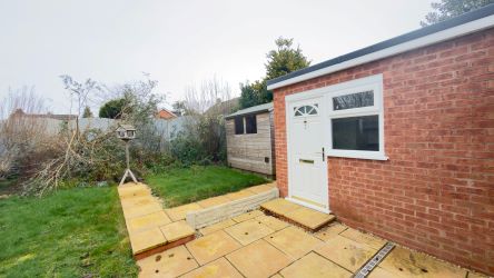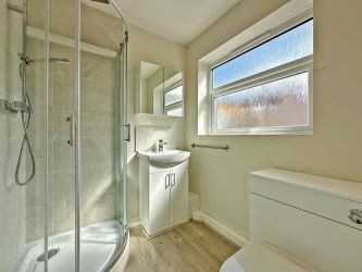 Both well-proportioned bedrooms are positioned to the front of the bungalow, each offering ample space for storage and furniture. A stylish shower room completes the interior, fitted with an enclosed corner shower, WC, and wash hand basin.