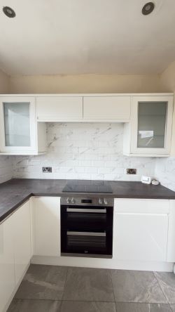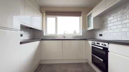 Modern fitted kitchen and bathroom.