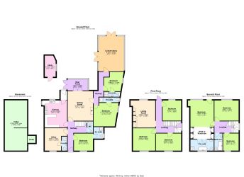 The sleeping quarters are equally impressive, with nine bedrooms to choose from. Five of these bedrooms benefit from en-suite facilities, combining comfort and convenience. A separate family bathroom and an additional WC serve the remaining bedrooms, making this home ideal for larger households or guests. The versatility of the layout also provides scope to adapt rooms to alternative uses, whether as offices, hobby spaces, or further reception areas.