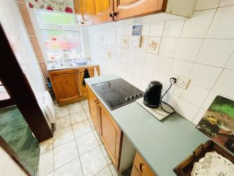 Kitchen - 3.43m x 1.12m (11'3 x 3'8) - Range of wall, drawer and base units with work surfaces above. Inset sink and drainer. Inset electric hob. Tiled floor. Wall mounted electric radiator. Double glazed window to the rear elevation.