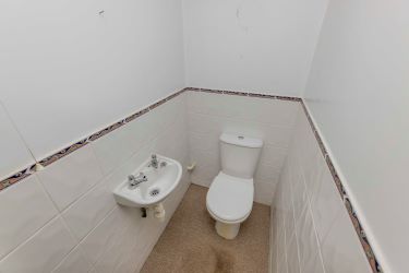 Cloakroom - 1.32m x 0.91m (4'4" x 3') - With W.C, wash hand basin, carpet, ceiling down lighting, part tiled walls and extractor fan.